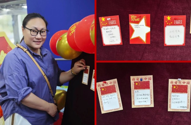 樓下大廳的活動(dòng)滿是巧思。職工先在卡片上寫下對(duì)祖國的祝福,“愿祖國繁榮昌盛”“祝祖國生日快樂”……一句句真摯話語被鄭重貼在“家國祝福板”上,映著大家的愛國情。緊接著的風(fēng)鈴手作環(huán)節(jié)里,有人串起葫蘆狀的木片與銅鈴,搖起來似帶著“福祿”的祝愿;有人偏愛燕子造型,讓靈動(dòng)的輪廓伴著鈴聲像要振翅。多樣的風(fēng)鈴造型格外吸睛,不少路過的人都忍不住停下腳步,好奇地圍過來瞧瞧。