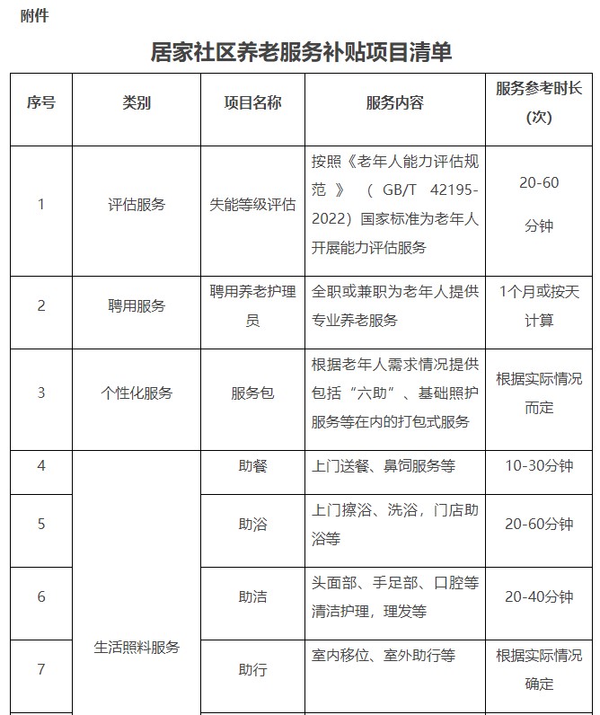 附件:居家社區(qū)養(yǎng)老服務(wù)補(bǔ)貼項目清單